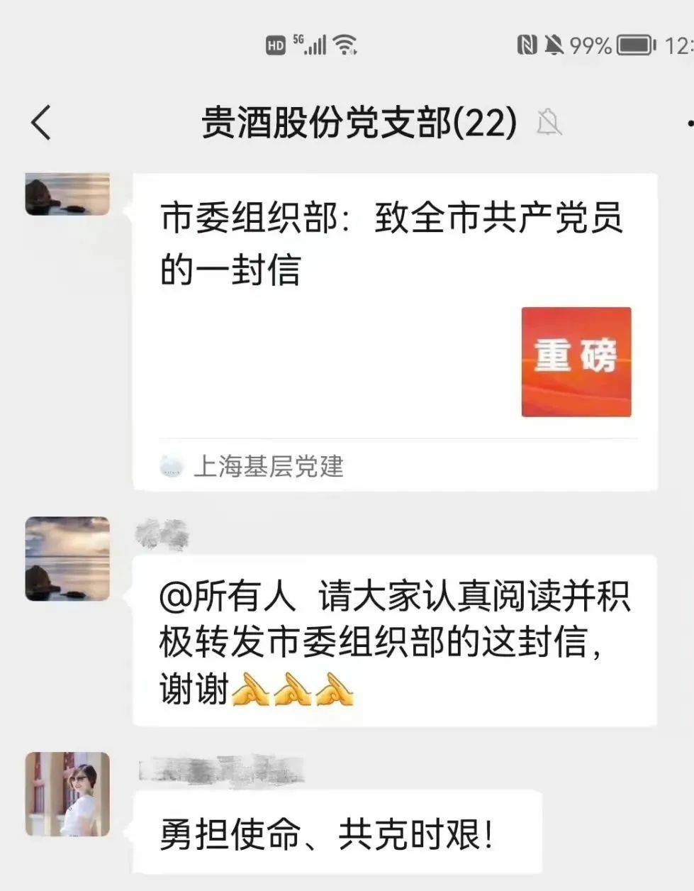 3月24日,上海市委组织部发出致全市共产党员的一封信,题为《在大战大考中彰显特殊责任、特殊担当》,号召全市党员坚决打赢疫情防控这场大仗硬仗。星空官方网站-星空(中国)股份党支部党员连夜在支部群内学习信件内容,积极响应号召,决心在打赢疫情防控和企业发展两场硬仗中充分发挥党员担当和先锋模范作用。